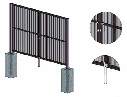 Опорные столбы – несущие элементы, к которым крепятся петли. Их делают более массивными, чем створки (обычно из трубы 80×80 мм или металлического швеллера).